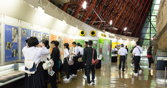 展示館へは、年間400校以上の小学校、中学校、そして高校などからの団体見学があります。 来館の児童生徒、市民の団体見学には、ボランティア・ガイドがご説明(「展示館からのお話(15分~20分)」など)します。 詳しくは展示館までお問い合わせください。